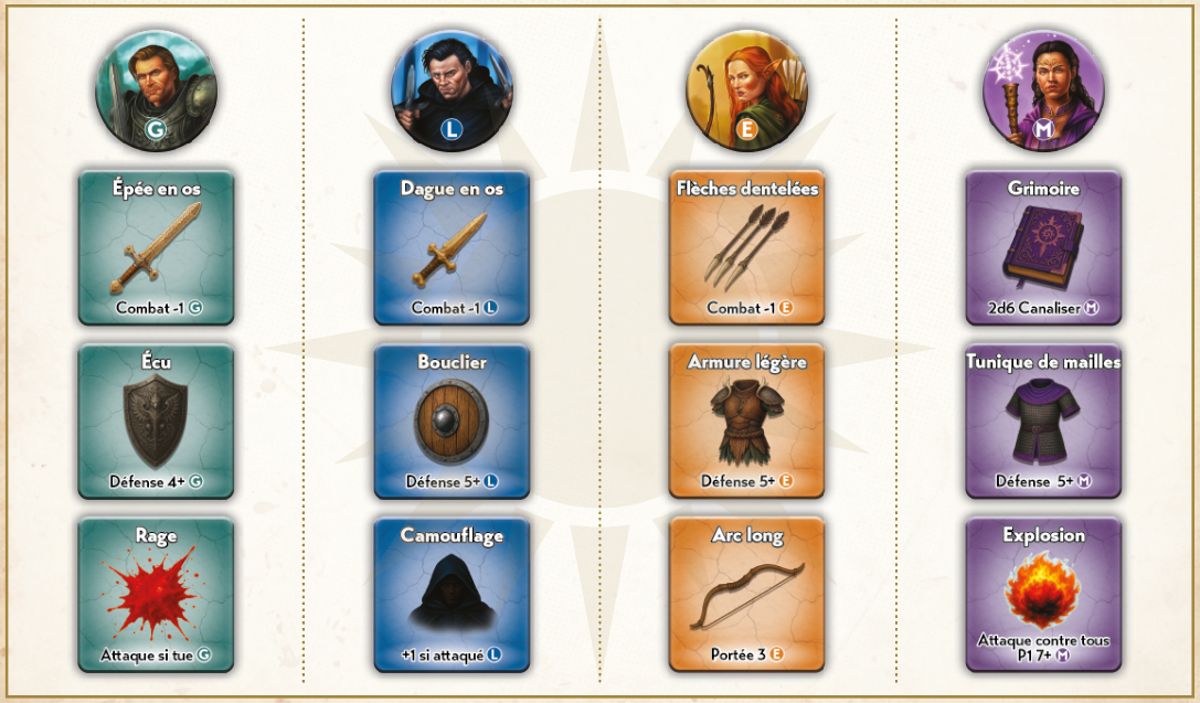 Camouflage, flèches dentelées, armures, grimoire… Un héros ne peut interagir qu’une seule fois avec chaque coffre. Vous devrez donc bien réfléchir quel aventurier a besoin de s’équiper.