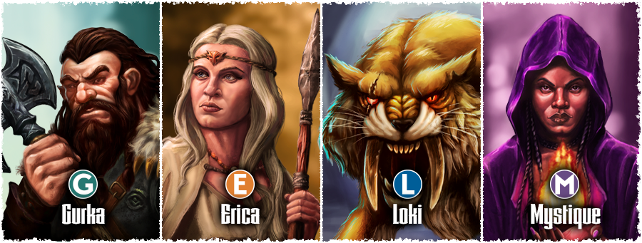 - Erica : elle dispose d’une attaque à distance grâce à son javelot, mais doit le ramasser ensuite pour pouvoir s’en servir à nouveau.