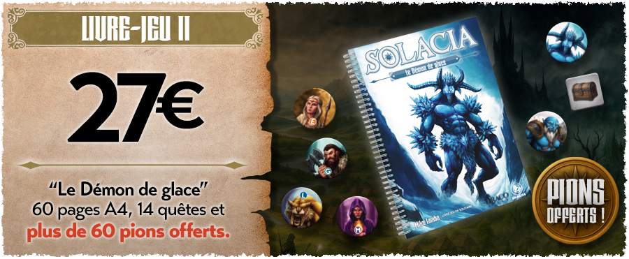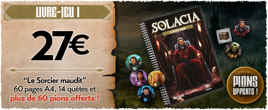 Solacia est un livre jeu en solitaire, mais vous pourrez facilement y jouer avec d’autres personnes en mode coopératif, en vous répartissant la gestion des héros an de vaincre vos ennemis et relever les nombreux dés que vous aurez à surmonter.